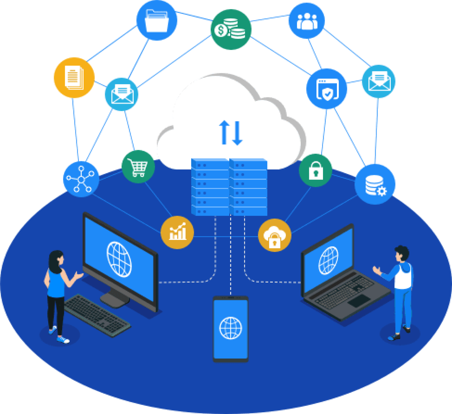Cloud integration is the seamless connection of different systems, applications, and data in the cloud. It works by leveraging APIs, connectors, and middleware to enable smooth communication and data sharing between various cloud-based services, optimizing workflows, and enhancing overall business efficiency. You can also take advantage of cloud integration with our cloud integration solutions.